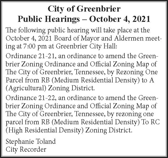Board of Mayor and Aldermen Meeting Public Hearing October 04, 2021
